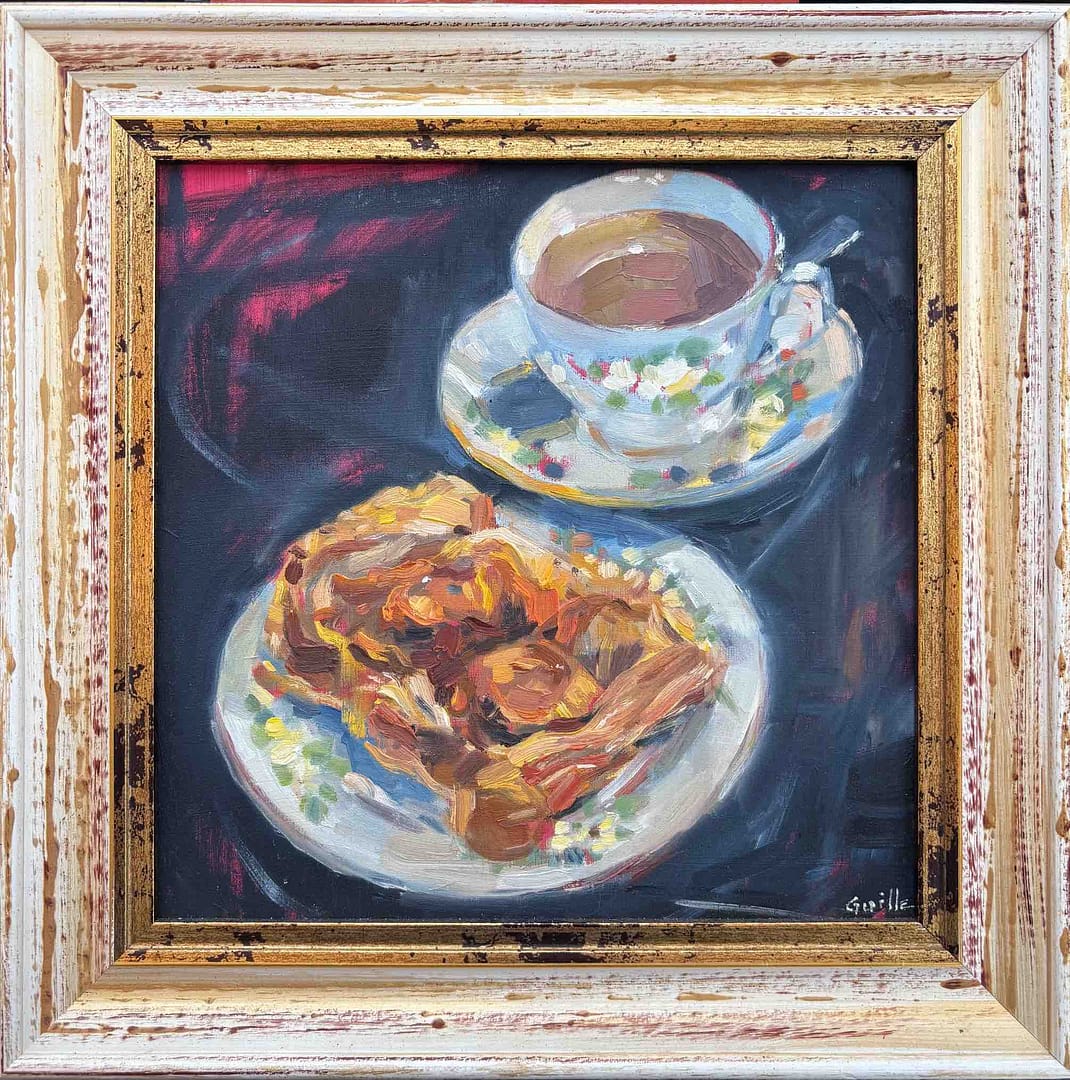 This freshly baked pastry looked too good not to share for posterity! Yorkshire tea in my new Gainsborough primrose adorned tea set.