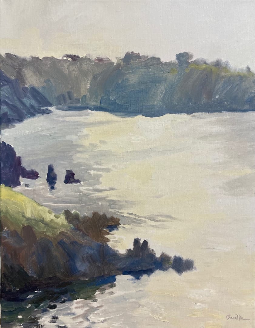 The morning I painted this the light was divine. I set up my easel looking directly into the springtime morning sunshine trying to capture the glare bouncing off the sea.
