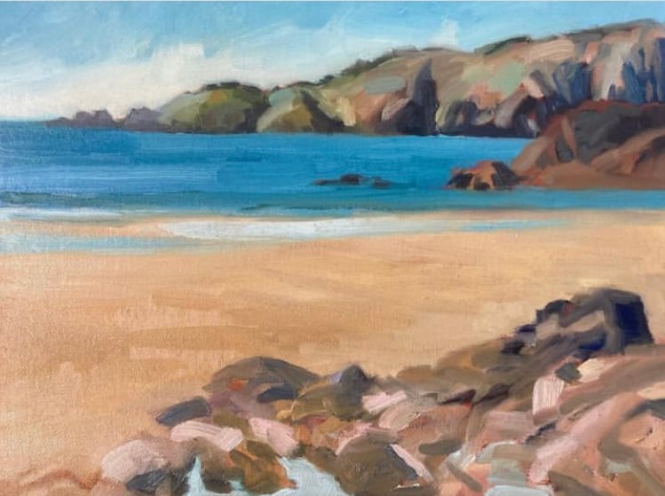 The colours in the cliffs on Brecqhou caught my eye, transitioning from brown to springtime green, echoing the colours in the rocky foreground.