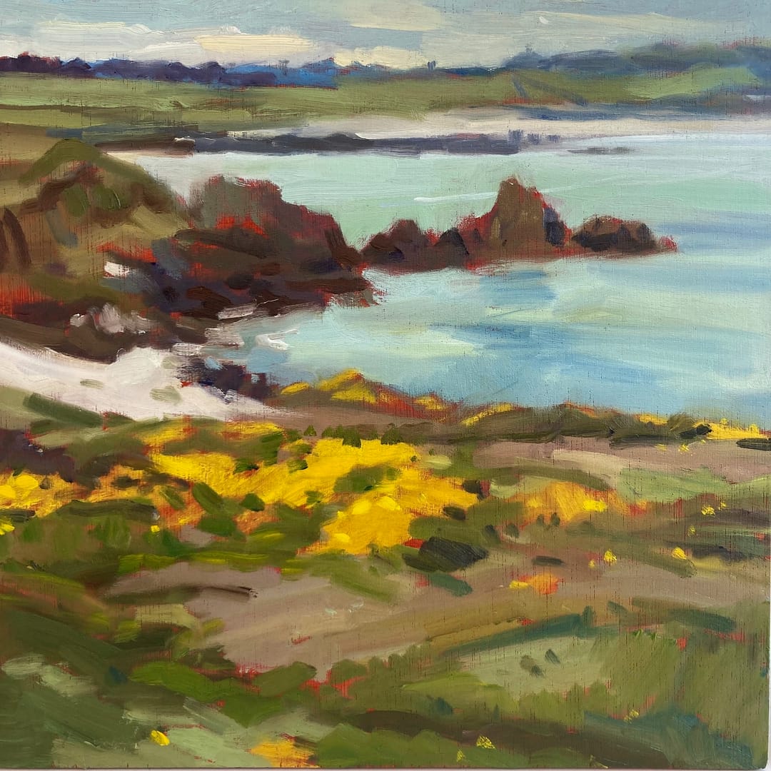 To be out painting when the gorse is in full bloom on L’Ancresse Common is so wonderful.