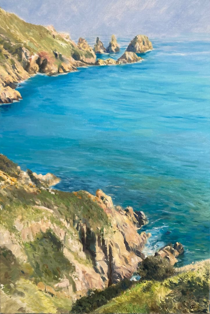 It is on these cliffs where I feel most at home.  There is a striking similarity between the craggy, weathered ochre and umber hues in this area of Guernsey and those of Sark.