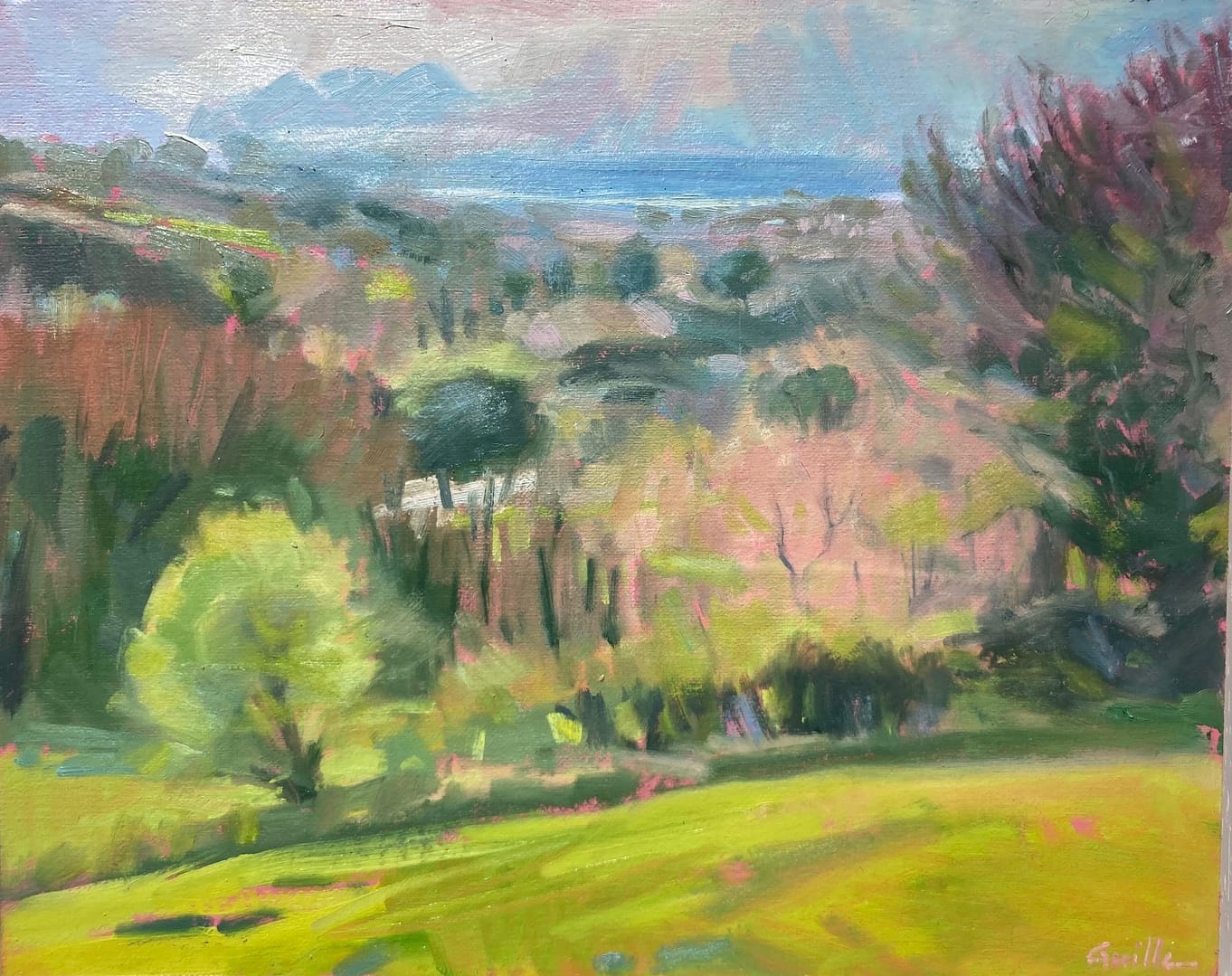 The first flush of Spring green in this beautiful valley, with the distant sea view, made an irresistible subject.