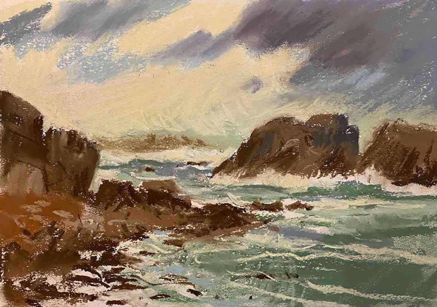 Just as the sun was setting, I sat on the side of Port Soil beach and drew the breakers brought by Storm Isha pounding on rocks