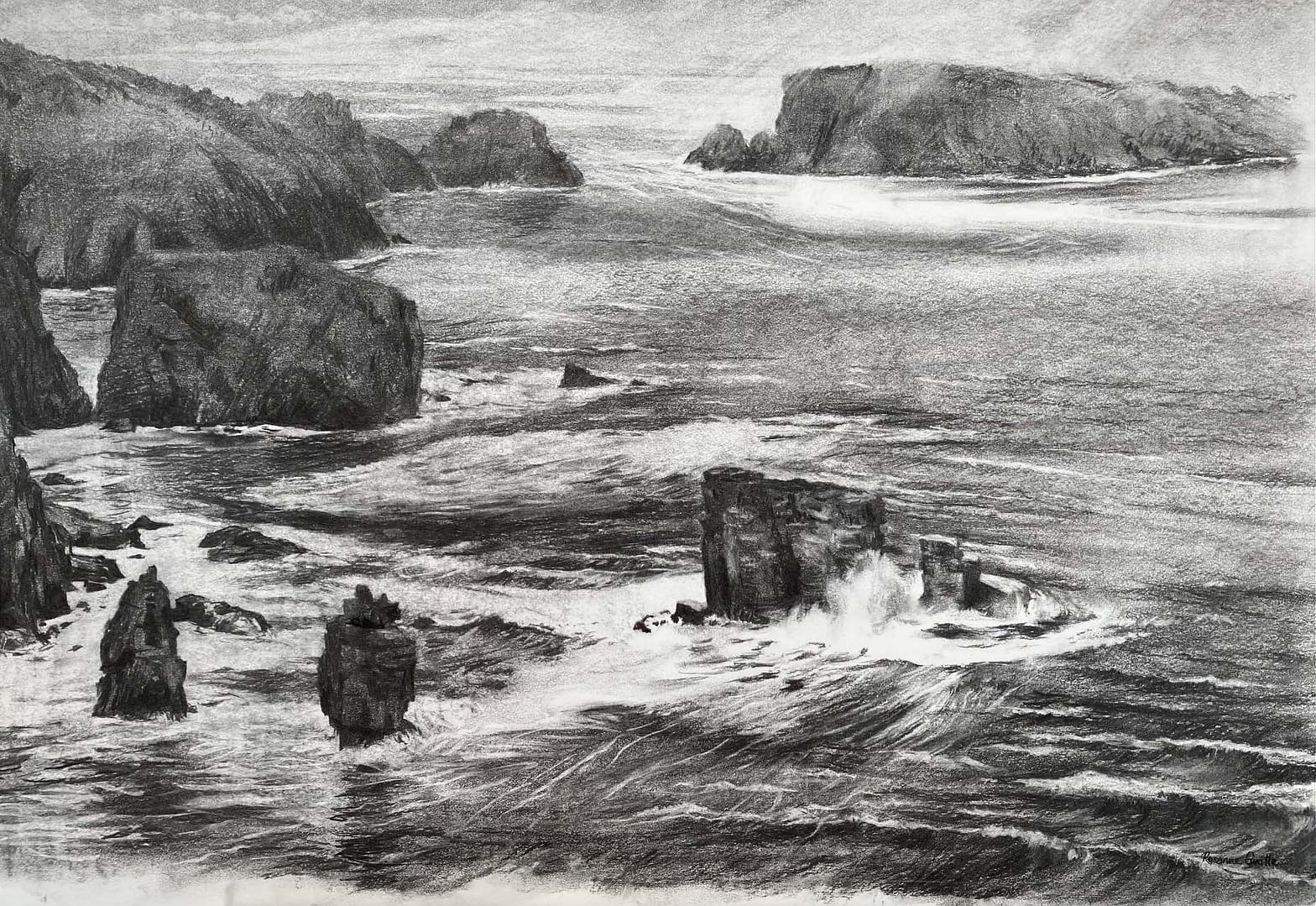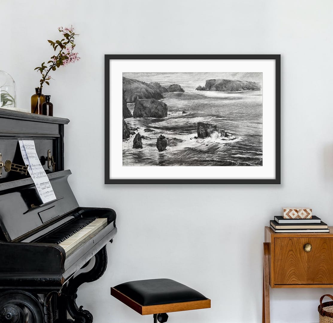 A large depiction of a storm from the high cliffs of L’eperquerie on the North East coast of Sark.